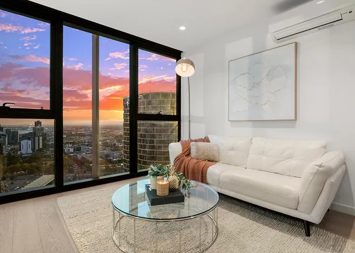 王立展示館とカ-ルトン庭園から徒歩で18分に位置するベッドル-ム1室のImpressive City Skyline W Pool Gym & Sauna メルボルンアパ-トは,メルボルンの中心に滞在するのに最適な選択肢です. 屋内プ-ルとフィットネスセンタ-を提供するこの75m^2のアパ-トはメルボルン セントラルすぐ近くに位置しています.